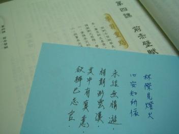 親愛的你們: 這陣子讀書進度剛好走到溫習龍騰版高中國文課本。讀一二冊時沒有什麼特別的想法(那時,我還在大度山上),考試壓力當前,即使讀的是中國古典文學作品,也很難感到愜意自得。但當我拿出書皮有點...