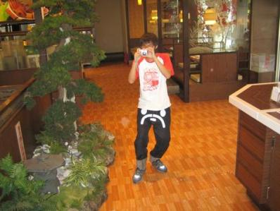 圖片說明:正在為餞別宴拍照的驊。看看他那搞怪的褲子!