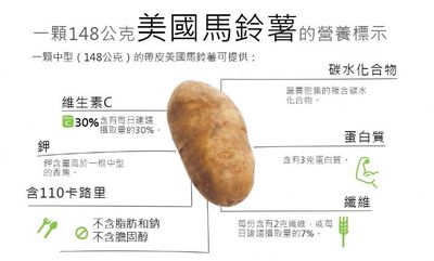 圖說:一顆中型148克帶皮美國馬鈴薯營養示意圖。(美國馬鈴薯協會提供)