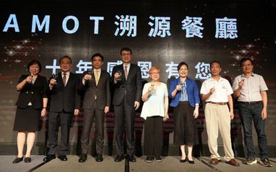 圖說:農委會農糧署署長胡忠一(左二起)、行政院食安辦公室主任許輔、能源及減碳辦公室執行長林子倫、AMOT理事長林貞、外交部非政府組織國際事務會執行長王雪虹,與眾多嘉賓於「第八屆星級溯源餐廳評鑑頒獎典禮」合影。(AMOT提供)