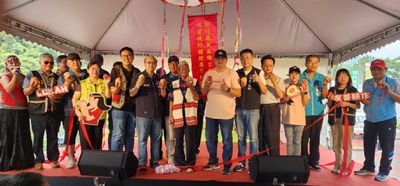 圖說:嘉樂村泰雅勇士雕像前廣場舉辦水蜜桃行銷記者會。(新竹縣尖石鄉公所提供)