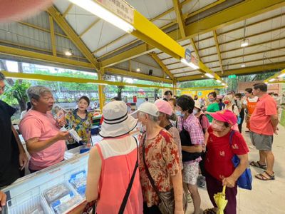 圖說:基隆區漁會攤位前民眾採買熱烈。