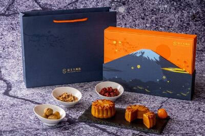 中秋節是華人重要的團圓之時,月餅除了自用之外,送禮需求也逐年成長,尤其是對長輩、長官、客戶更需要挑選具有意涵的月餅,才能禮到面子足。富士大飯店的「月映富士」月餅禮盒的外盒是以手工打造,袖套式的外盒讓富士山更具層次感,顏色設計以日出橘、夜空藍營造出富士山的光芒與靜謐,少了繁複的包裝,但仍然能呈現出飽滿的藝術與頂級感。