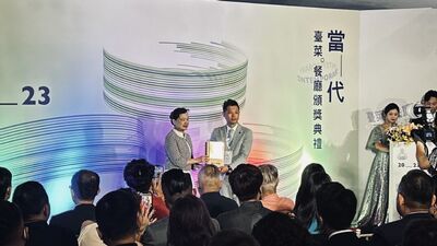 圖說:經濟部部長王美花頒贈十大當代臺菜餐廳給馨苑小料理主廚。