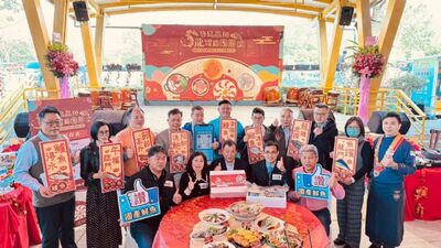 圖說:全國漁會總幹事林啟滄展示經典臺味年菜「金龍迎春吉慶鯧隆」鯧魚米粉湯。