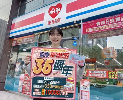 圖說:萊爾富歡慶35週年,重磅推出限量35週年金錢卡,每張售價350元,最高可得350元購物金,報會員資格再抽現金1萬元。