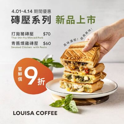 路易莎咖啡磚壓系列新品4月報到 打拋豬、青醬燻雞 嘗鮮期間9折優惠