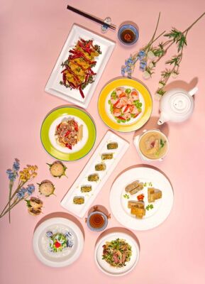 家宴中餐廳推出的「春日蔥滿幸福」限定料理,每道195元起的價格超親民,包含了濃郁鮮美且有湯中之王美譽的「老火醃篤鮮燉花膠(八頭)」、香氣迷人的「春筍客家鹹豬肉」、風味高雅的「松露腐衣夜開花」..等。而由平溪產地直送新鮮珠蔥為主角設計的「椒麻珠蔥小酥肉」、「燻香臘肉炒珠蔥」、「白灼珠蔥銀魚羹」、「珠蔥千層胡椒餅」,則是完美展現了珠蔥百搭且多變的風貌,讓民眾不用大老遠跑到產地就能吃到這季節限定的美味!百宴自助餐廳點心坊也首度推出用平溪珠蔥特製的「蔥香鹹蛋糕」,每份380元。在口感超級輕盈又濕潤的戚風蛋糕體上,撒入平溪產地直送的翠綠珠蔥,一出爐撲鼻而來得濃郁的蛋香與蔥香讓人食指大動,夾層抹上美乃滋與肉鬆,鹹甜迷人超唰嘴,讓人不只心動也「蔥」動的訂起來。