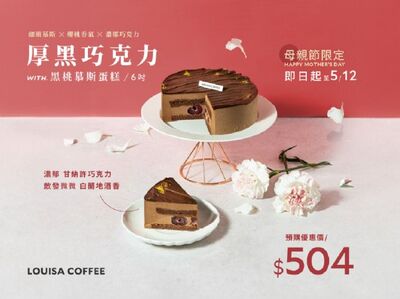圖說:路易莎母親節厚黑巧克力蛋糕預購優惠價504元。