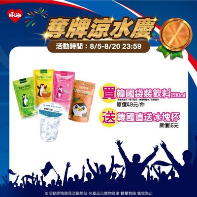 萊爾富為讓民眾在炎炎夏日,能與三五好友一同舉杯歡慶奪銅,即日起至8月20日期間祭出四款限量韓國著名國民袋裝飲料-芒果風味飲、青葡萄風味飲、橘子風味飲、水蜜桃風味冰茶(原單件售價49元)送韓國直送-冰塊杯(原單件售價15元),數量有限,售完為止。這款限量韓國袋裝飲料以熱帶水果的獨特風味製成,味道香甜,口感柔和,不管是加冰塊或加入氣泡水,就能做出多種變化,讓民眾不管置身何處,都能享受親手調製清涼夏日特調的樂趣。
