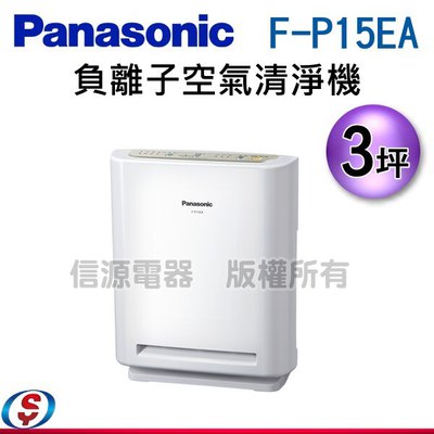 【熱賣商品】可議價【信源電器】3坪【Panasonic國際牌 負離子空氣清淨機】F-P15EA-FP15EA-找信用卡購買優惠