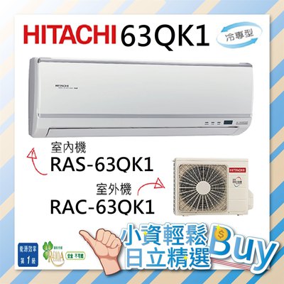 【2019熱門產品】日立 HITACHI 分離式 變頻 冷氣 2.7噸 8-12坪【0利率+超值禮+結帳再折+安裝】RAC-S-63QK1-有限