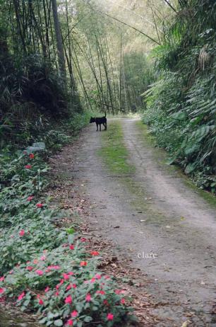 看到這隻瘦黑狗,就走在那清香的群花間;