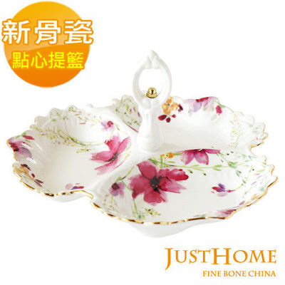 [ 網友 ] 【Just Home】潘朵拉新骨瓷三格點心盤附提把 [ 網友 ]