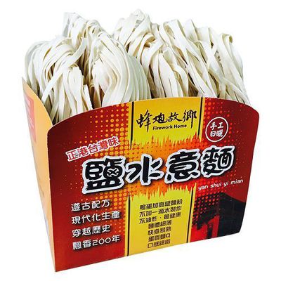 • 蜂炮故鄉-手工日曬鹽水意麵,遵古配方現代化手工日曬設備生產 以鴨蛋加高級麵粉製作而成不加一滴水,面體細薄快煮易熟,