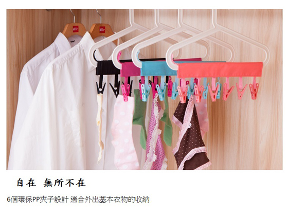對於宅配旅行出差在外必備!方便攜帶不佔空間,六個環保PP夾可晾曬個人私物,襪子、內衣不用再溼答答的掛椅背啦!,相信許多人都有很深刻的印象!