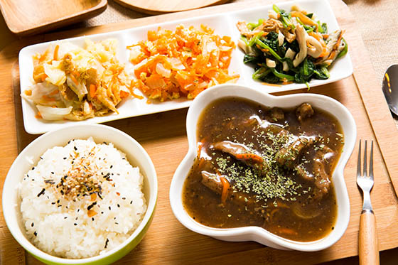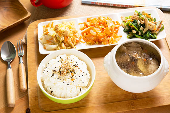 養生溫醇的藥膳排骨,搭配白飯與多種小菜配料,超豐盛滿足熱騰騰,寒氣都被趕跑了。