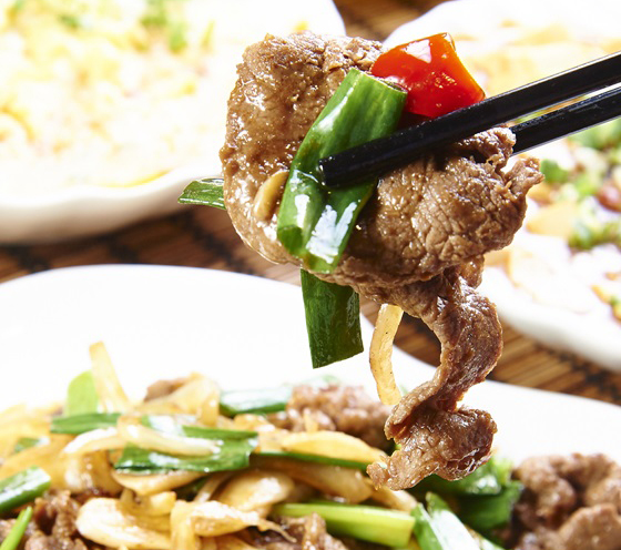 將牛熱銷肉切片下鍋炒至油亮,加入蔥段、辣椒調味,口感扎實又彈牙,香嫩入口,讓人馬上多扒了幾口飯。