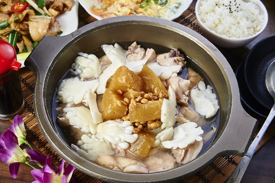 選用鮮嫩雞肉,再加入剝皮辣椒、蛤蜊及鮮菇,湯頭十分入味,溫潤順口,微微的辣度讓人越吃越上癮。
