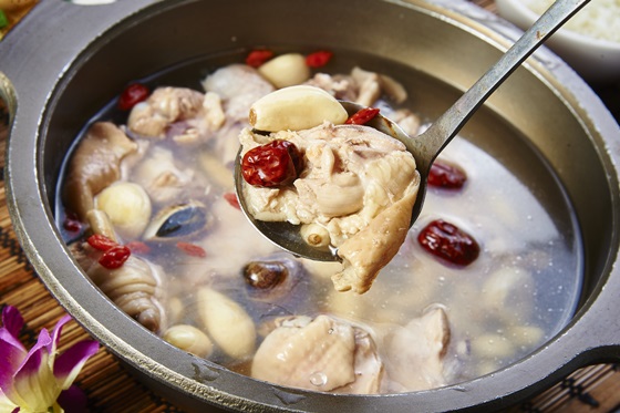 蛤蜊的鮮美與雞肉的甜嫩,在濃厚的蒜頭香氣下更加凸顯,再加入些許枸杞及紅棗,湯色甘醇圓潤、自然清香、順口不油膩,卻十分夠味。