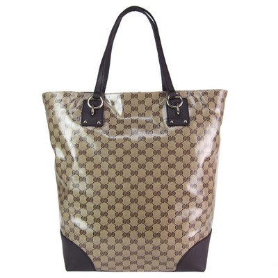 【GUCCI】漆皮LOGO圓環釦托特包(大-咖啡-85折)
