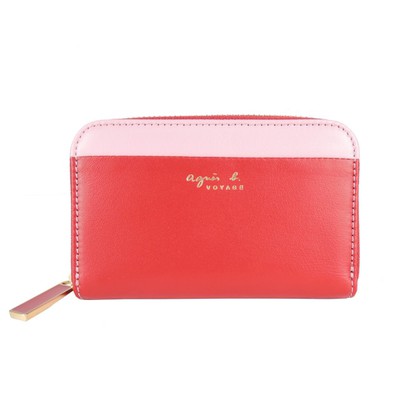 【agnes b】燙金雙色皮革零錢包(紅-85折)