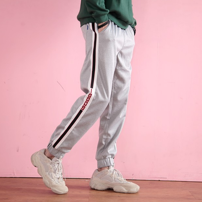 【限時下殺】潮流字母織帶棉長褲(灰色) 1709 商品熱銷