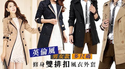 不可錯過! 口碑推薦英倫風男女款多尺碼修身雙排扣風衣外套這邊好便宜