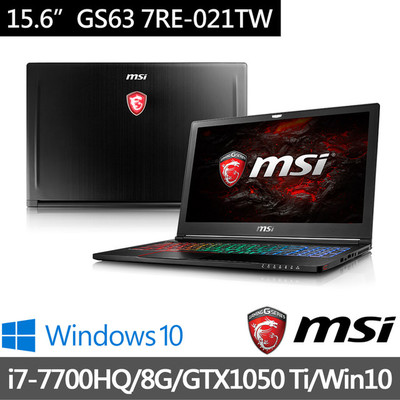 【MSI微星】GS63VR-021 15吋電競筆電(i7-7700HQ/8G/256+1T/GTX1050 Ti-4G/win10)