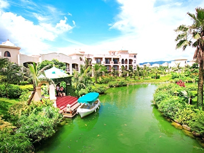 本渡假飯店由世 界排名第一的WAT&G精心設計,不只是一家飯店,而是一個架構在運河之上的人文休閒地。全區西班牙高第式建築233間客房,完全環繞運河網路打 造,讓您在原木、鍛鐵、青銅、板岩、陶磚的濃濃的人文氣息中,感受更多未知而美好的生活事物。以「運河、人文、休閒」為概念的花蓮理想大地渡假飯店,其追 求的不只是成為國內第一,而更是以成為世界第一為標竿,希望在讓國內所有追求優質渡假消費者不必出國就能享有與國際同軌的高質享受同時,更能吸引全世界的 消費者奔向台灣這片美麗的淨土。
