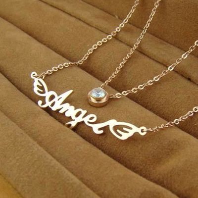 [開箱分享]【米蘭精品】玫瑰金鑲鑽純銀項鍊天使英文字母雙層飾品