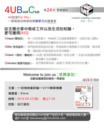 5月27日 19:30【4UBC】將由Steve分享<<哈佛商業評論>>精選導讀。St...