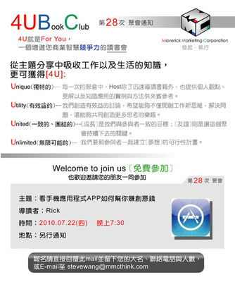 7月22日(Thu.) 19:30【4UBC】將由Rick分享<看手機應用程式APP如何幫你賺創意錢&g...