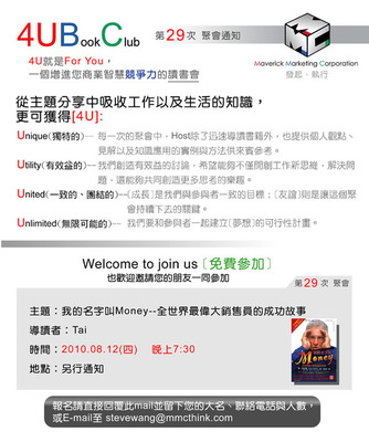 8月12日(Thu.) 19:30【4UBC】將由Tai分享<<我的名字叫Money:全世界最偉大...