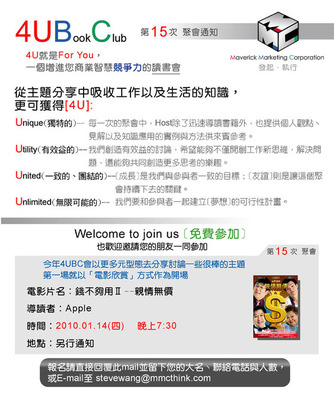 各位【steve in the well】的讀者:很開心地與大家分享這個訊息:2010 4UBC 即將展開!歡...