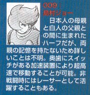 原為法國巴黎的舞者,改造後具有十分敏銳的聽力,周圍五十公里的聲音都聽得十分清楚,後來與009產生感情,兩人可說是無敵金剛009的超人情侶。