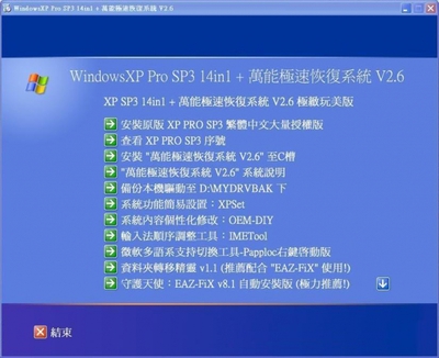 萬能極速恢復系統 V2.6 + WinXP PRO SP3 14in1 終極完美版