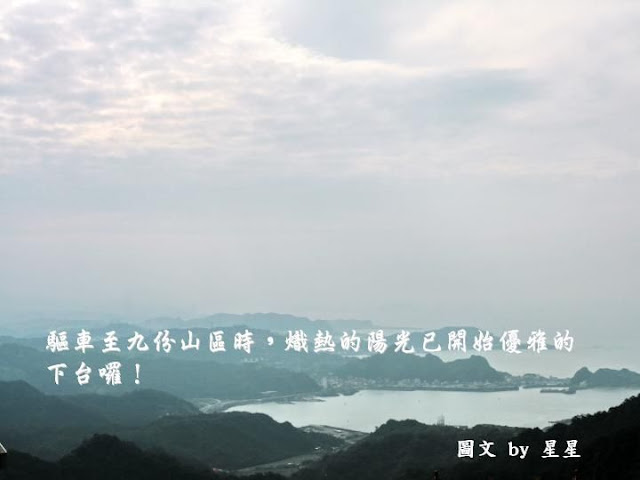 就這樣在台北天空終於看見陽光的某個週三,一車帶著4個歐巴桑同學走了一趟濱海公路之旅。九點半準時從社大門口出發,真是一群太過契合的同伴吧!一上車嘰喳聊天聲音不曾停止過,向來很習慣寧靜開車空間的我,忽然有種受不了的煩躁,還好已經很懂得調適自己的心去融入這紅塵人心中,我讓自己隨著好聽的CD音樂起舞,漸漸的那吵雜的聲音已被我排除於外了。