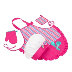 (示意情境照;扮裝小廚娘詳細零件:圍裙x1 廚師帽x1微波爐手套x1 鍋墊x1 炒菜鏟x1 湯匙x1)