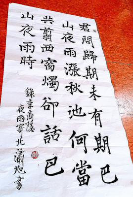 此詩王維秋日所感 , 今晚氣溫微降略覺似秋 , 吾自檢視舊作應仍值一賞 , 想余已有些許日子未作 行草書寫 ,舊日的揮灑頗抒心懷。 輞川閑居贈裴秀才迪 王維 寒山轉蒼翠, 秋水日潺湲...