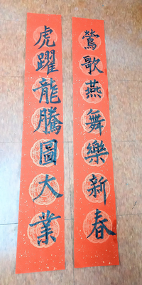 大家好 , 即將過年 ,在此應景寫春聯與格友分享 ,寫的是 :