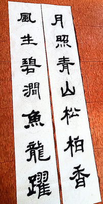 這聯寫的是 : 風生碧澗魚龍躍 , 月照青山松柏香 。