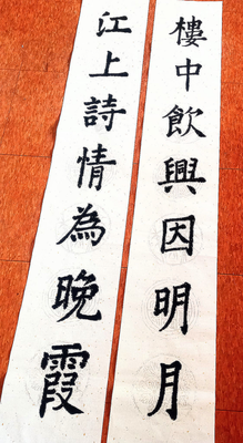 此聯也是文人的雅興 , " 樓中飲興因明月 , 江上詩情為晚霞 " 把文人的特點秒寫得淋漓盡致~