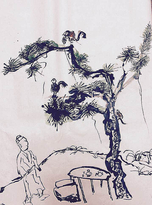 這是許久以前的作品 - 書生看鼠 , 畫中可見松鼠爬樹,還有吃松果 ,松樹下擺放著桌子和椅子, 一位書生專注看松鼠 ,覺得十分有趣 ... 此為原創作品。