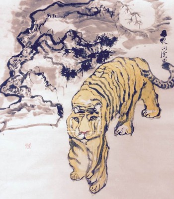 多年前的一幅畫作 - 月夜山虎出