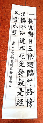有一樹梅花凌寒早開,枝條潔白如玉條。它遠離人來車往的村路,臨近溪水橋邊。人們不知寒梅靠近溪水提早開放,以爲那是經冬而未消融的白雪。 ( 網譯)