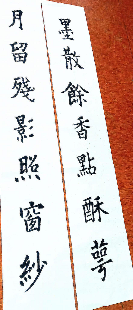 久未寫歐陽詢了 , 今朝複習一下 ,這聯的意境也是不錯 : 墨散餘香點酥萼 ,月留殘影照窗紗 ~