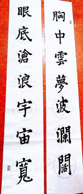 為大家帶來這波瀾壯闊的對聯作品 : 胸中雲夢波瀾闊 , 眼底滄浪宇宙寬