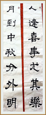 中秋節到了 , 月圓人團圓,寫個隸書應景聯 : 人逢喜事尤其樂 ,月到中秋分外明