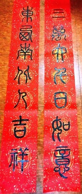 大家好 ,周末略感寒冷,騎車在路上寒風陣陣 , 氣溫降低了 , 回家寫一個篆書春聯 ,分享給喜歡